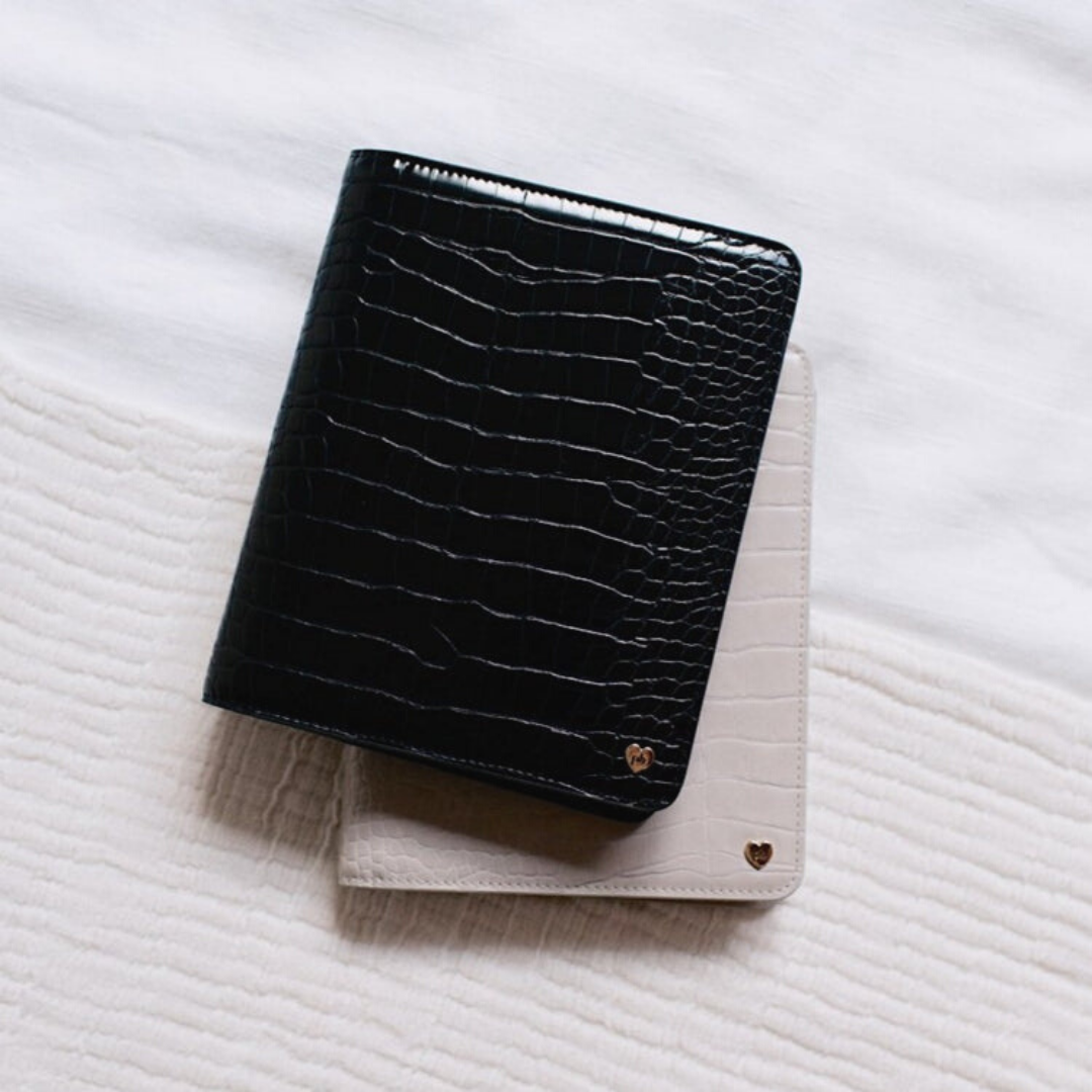Starting out with a few half letter disc bound inserts and sticky notes, Poi & Hun has developed into a complete product line with a signature style for minimal and functional planning. They offer a wide array of undated insert styles (daily, monthly, weekly and functional on 80lb paper) in half letter, mini HP, classic HP and rings (pocket, personal, A5) as well as printables, planner accessories/essentials, notepads, acrylic organizers, journaling cards and more. They have also expanded into vegan leather products with the introduction of Vegan Leather Pouches and Compact Desk Agenda Covers. The agendas are a beautiful vegan leather croc design in A5 and mini HP size and can fit up to 1” discs or any coil or bound notebook or planner (like a Hobonichi). They also released an Acrylic Collection of desk organizers as part of their lifestyle vision for the brand. There may even be a possible Poi & Hun planner coming soon.