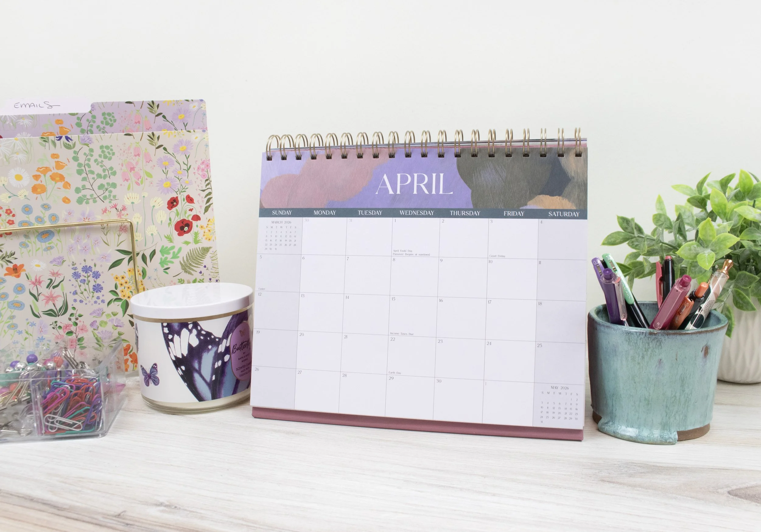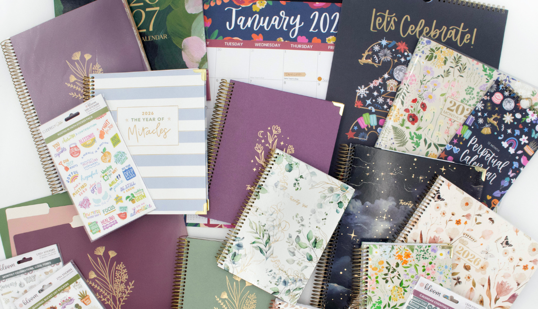 The 2026 Hanging Wall Calendars (11” x 17”) are both functional and look beautiful on the wall in any space. They feature 13 months of bloom’s most popular designs with spacious boxes, foil accents, sturdy construction and clearly marked holidays. Perfect for keeping track of appointments, busy schedules, family command center and more. The calendars are available in three designs, Seasonal, Holiday Icons and Paint Strokes.