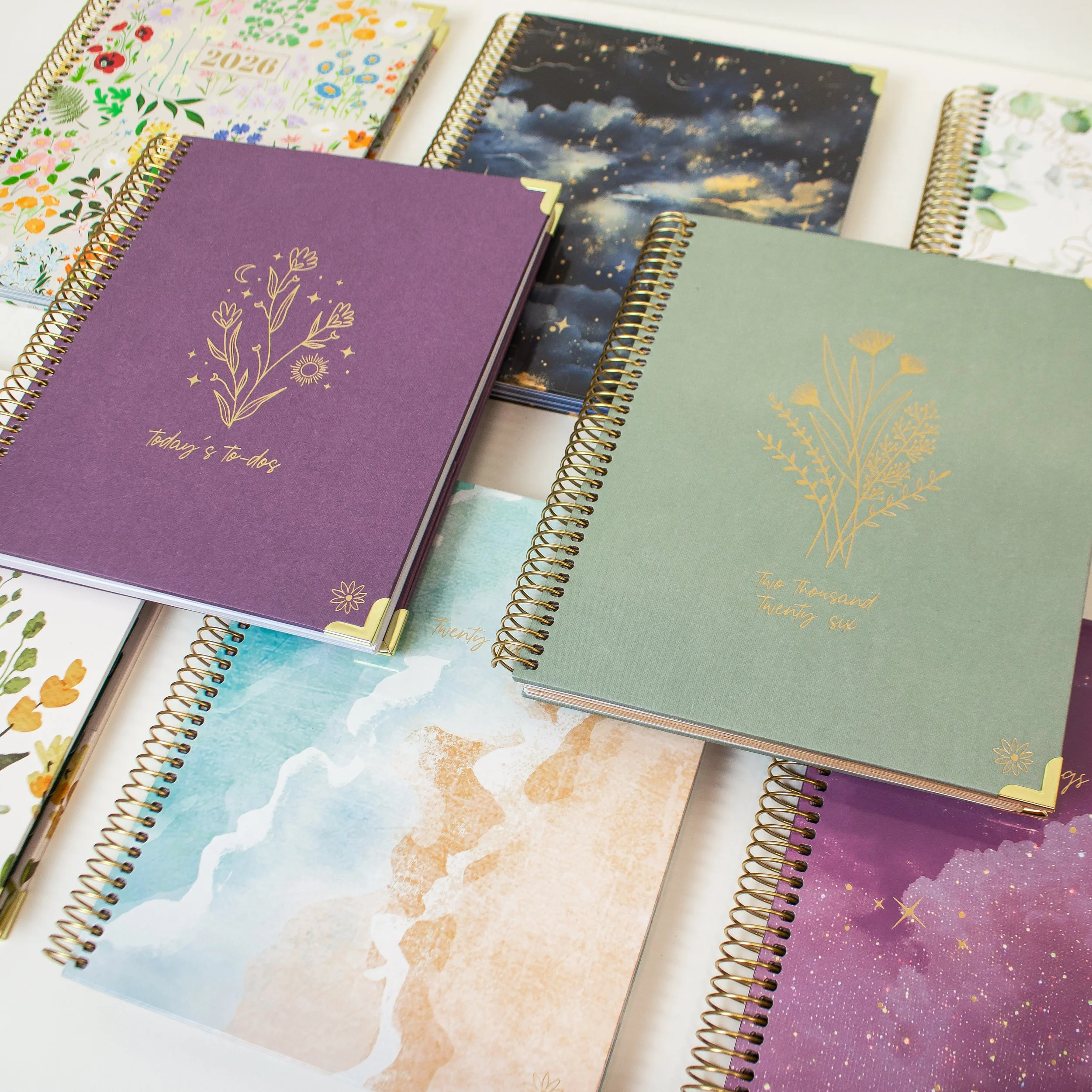 The 2026 Vision Planners are available in seven cover designs including Beige Bouquet, Eucalyptus, Garden Party Beige, Good Things Are Coming, Green Linen, Midnight Sky and Ocean Oasis. The planners feature a paper upgrade to 110 GSM and contain monthly and vertical column weekly spreads (lined) plus extra life coaching pages intentionally created to help you stay organized and motivated throughout the year.