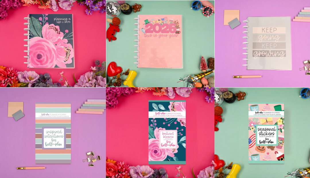This year marks the 10th birthday for the Kellofplan brand!! Just in time for the celebration, founder Heather Kell launches her new 2026 Planner Collection. Similar to last year’s collection, the 2026 Planners will be available in three design themes with two interior layout options (vertical and dashboard). The three design themes for this year include the return of two popular favorites, Brilliant Blooms Vol 2 and Seasonal plus the new Inspired Intentions. All of the planners feature neutral (black and white) monthly and weekly layouts, year at a glance pages and are complemented by double sided monthly dividers for the respective design theme, white metal discs, updated font styles and high quality paper.