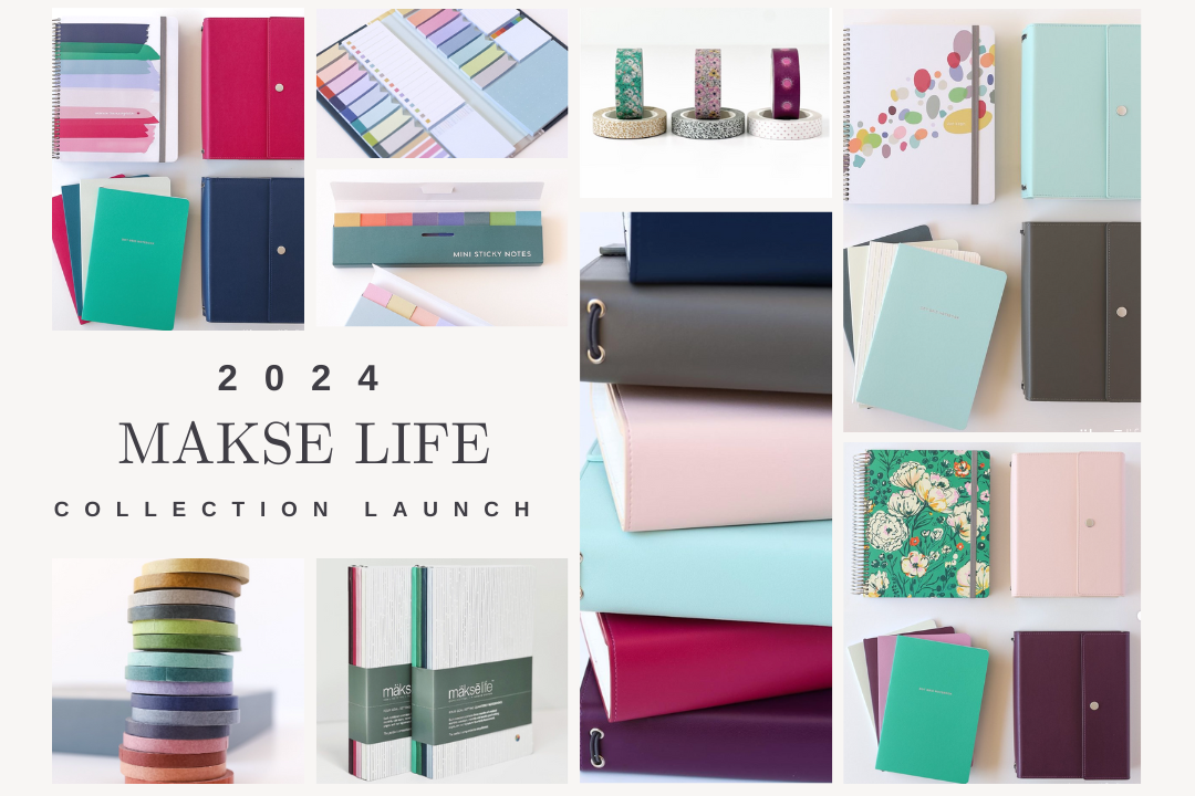 The 2024 collection from MäksēLife is filled with beautiful cover designs, inspiring product updates, exciting artist collaborations, functional products and fun accessories. From the planners to the packaging, the brand has gotten a total glow up with innovative new details inside and out. There is definitely a cover choice for everyone from colorful florals to neutral tones, the collection includes coordinating interiors and accessories that make creating your goal system for the new year simple and stylish. The entire collection will be available on Thursday, September 28th.