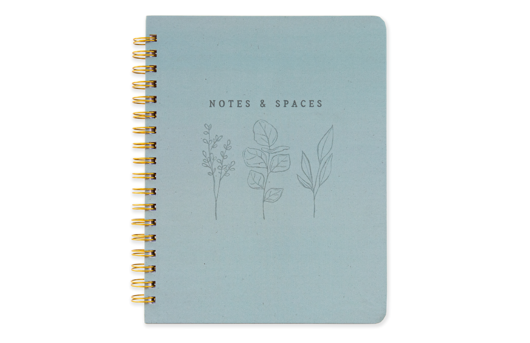 An exciting new product coming for 2022 is called Notes & Spaces. This product goes beyond your traditional notebook and is designed to be a companion to your Space Planner, or any planner. It has three sections which are exactly what is says, a combination of notes and spaces. Section one features a condensed spaces layout, section two is lined notes pages and section three is dot grid pages. The book is coil bound with a firm cover, a back pocket folder and 100 gsm paper with two floral cover designs (soft rose and simple stems).