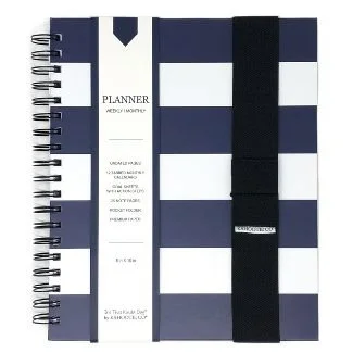 This planner is the complete package. It has classic navy stripe design, an elastic book band with pen holders, a back pocket folder with two sticker sheets and so much more. Undated monthly spreads and weekly dashboard layouts with room for meal planning, tasks, habit tracking, weekly goals and focus.